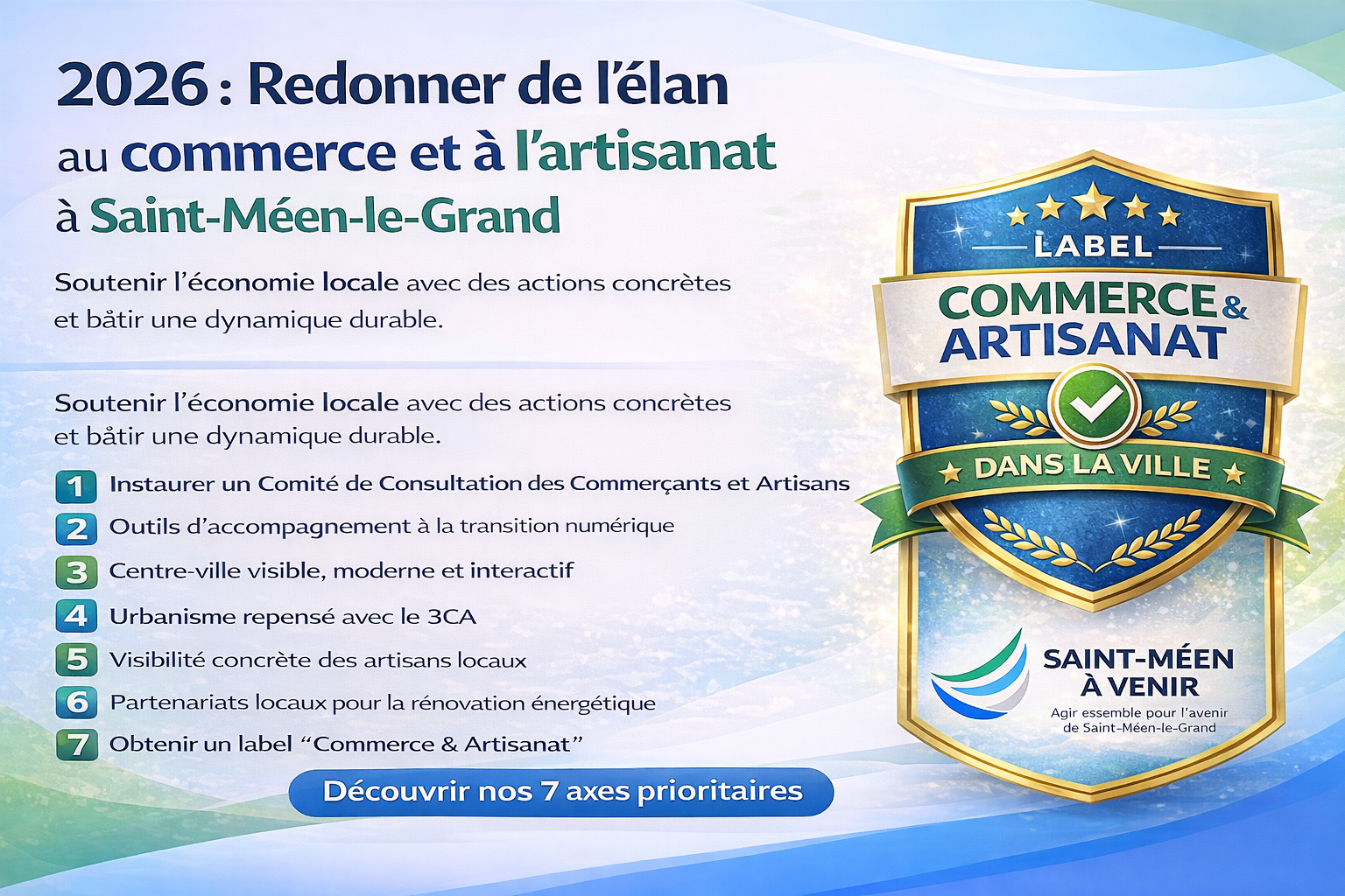 Pour 2026, notre engagement est simple : soutenir, valoriser et moderniser l’économie de proximité, avec des actions concrètes et une méthode basée sur l’écoute.